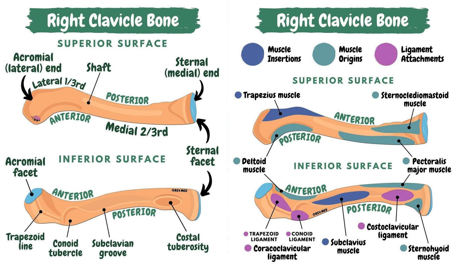 Muscle attachment- Deltoid, Trapezius, P.Major, Sternocleidomastoid, Subclavius-Pkk