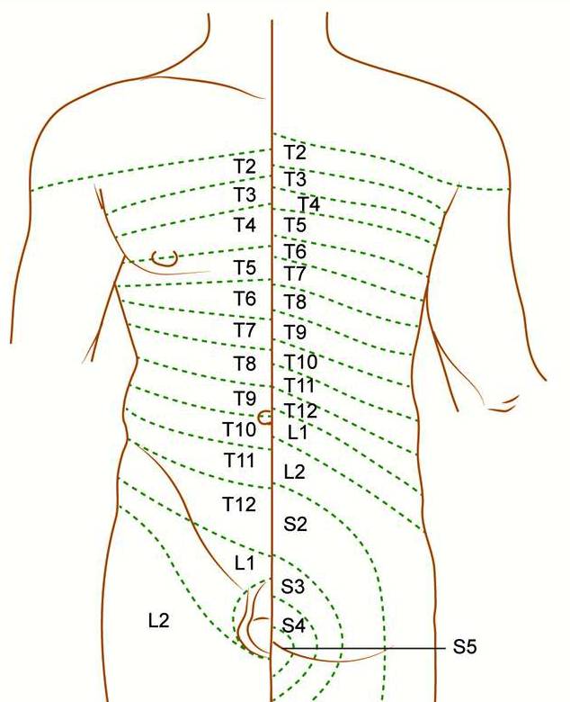 Lower six thoracic nerves (T7–T12) Two lateral intercostal nerves are derived from lower two intercostal nerves (T10, T11) pierce external intercostal muscle Divided into anterior and posterior divisions to supply skin on side of abdomen