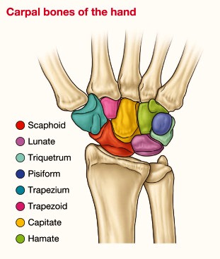 Scaphoid , Lunate, Triquetral ,Pissiform, Trapezium, Trapezoid, Capitate ,hamate-PKK