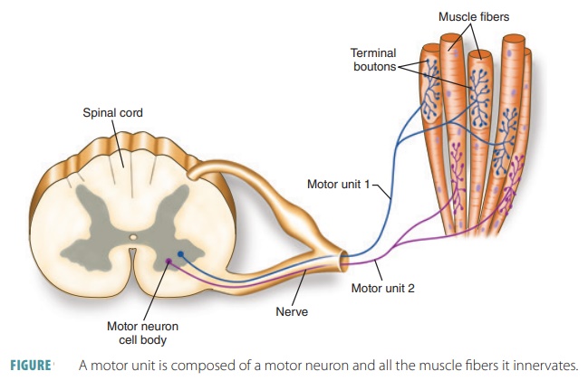 A motor unit is the basic functional unit of skeletal muscle, consisting of a single motor neuron and all the muscle fibers it innervates. When a motor neuron is activated, all of the muscle fibers within its unit contract together in an "all-or-none" fashion. The force of a muscle contraction is controlled by the number of motor units recruited and activated -PKK